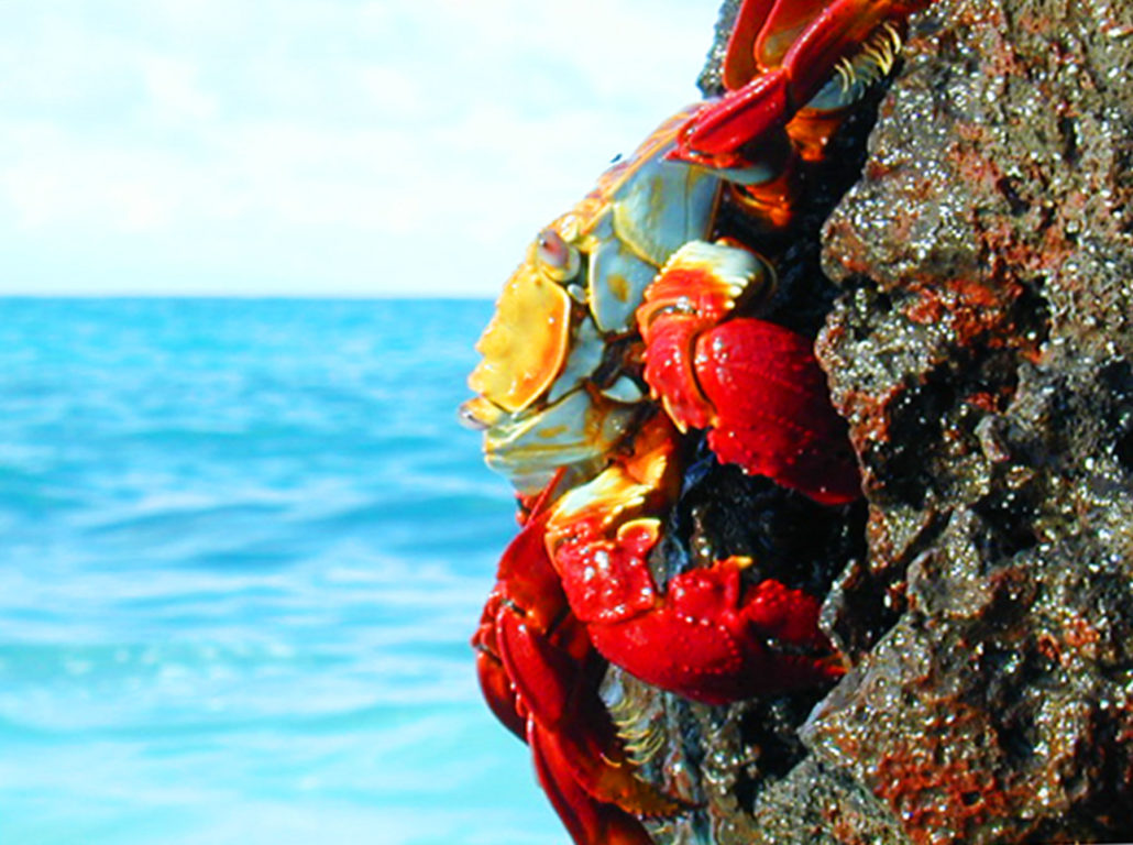 There are a great number of other endemic organisms, sufficiently different enough from the other islands like the Hood mocking bird and the lava lizards with their distinct red heads. The marine iguanas also have huge patches of red and often bright green, detracting from the black appearance of other islands.
