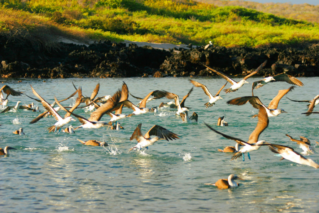 Isabela is the largest island in the archipelago with a line of volcanoes stretching for more than 100 miles. Each volcano has its own endemic tortoise subspecies. A climatic barrier forms due to such tall volcanoes and spending a few days in this area gives you a raw experience. Deep oceanic animals come to the waters here due to the upwelling current; dolphins, orcas, sunfish and blue whales will make an appearance.
